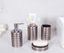 Add a touch of sophistication to your bathroom with this elegant 4-piece bathroom accessory set featuring a sleek silver steel stripes design. This set includes a soap dish, toothbrush holder, mouthwash cup, and soap dispenser, combining functionality with a refined metallic accent that elevates any space.
